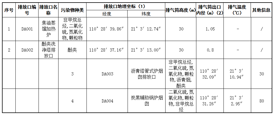 表6 大氣排放口基本情況表